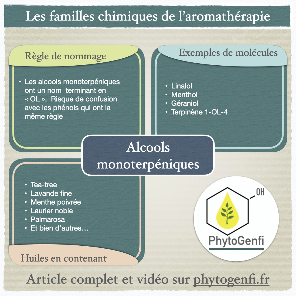 - Les alcools monoterpéniques appelés aussi monoterpénols
