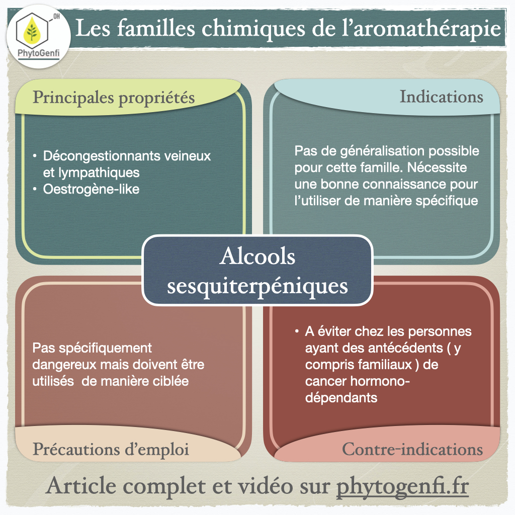 - Les alcools sesquiterpéniques appelés aussi sesquiterpénols