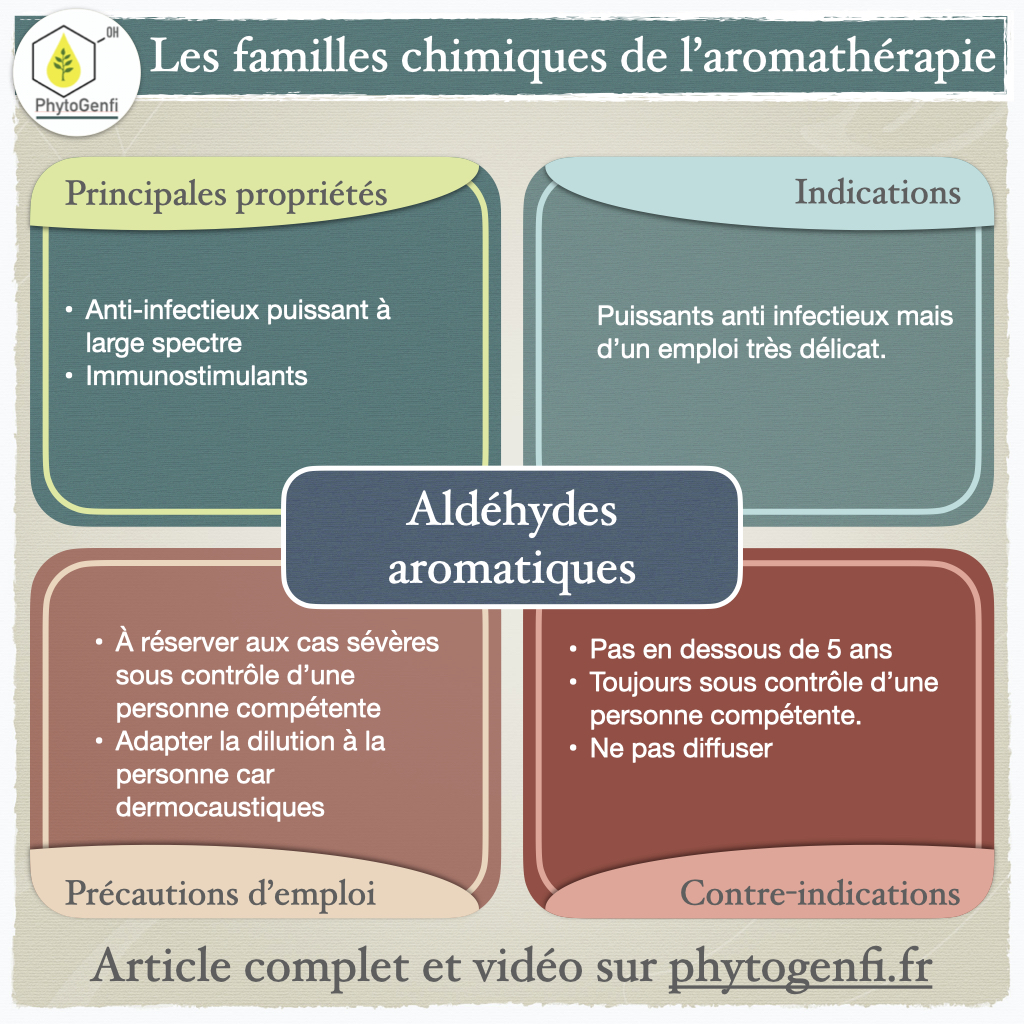 Comme les phénols les aldéhydes aromatiques sont des molécules très puissantes à manier avec précaution. C’est une famille très utile en infectiologie car à très large spectre. Elles est efficace contre les virus, les bactéries, les champignons et les parasites. C’est une famille à utiliser avec prudence. En général on rencontre cette famille quand on utilise la cannelle de Ceylan mais pas seulement.