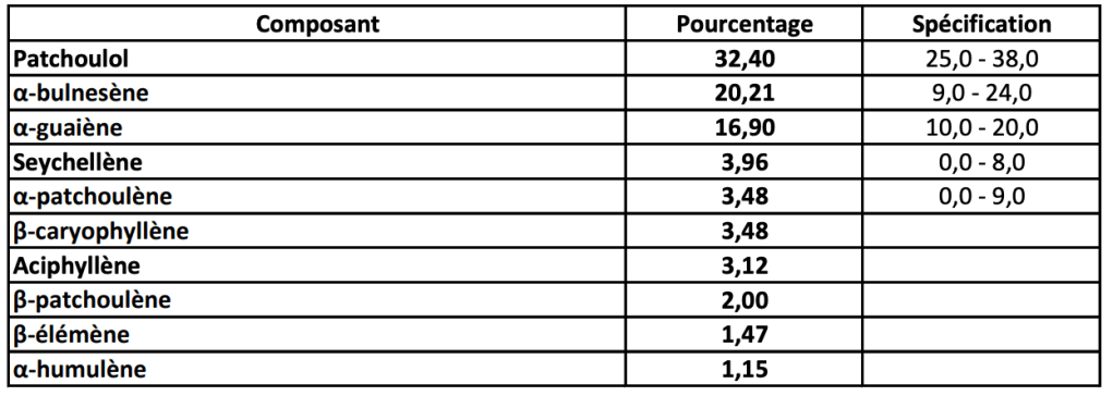 Un exemple de composition à partir d’un certificat d’analyse du laboratoire Pierre Franchomme :