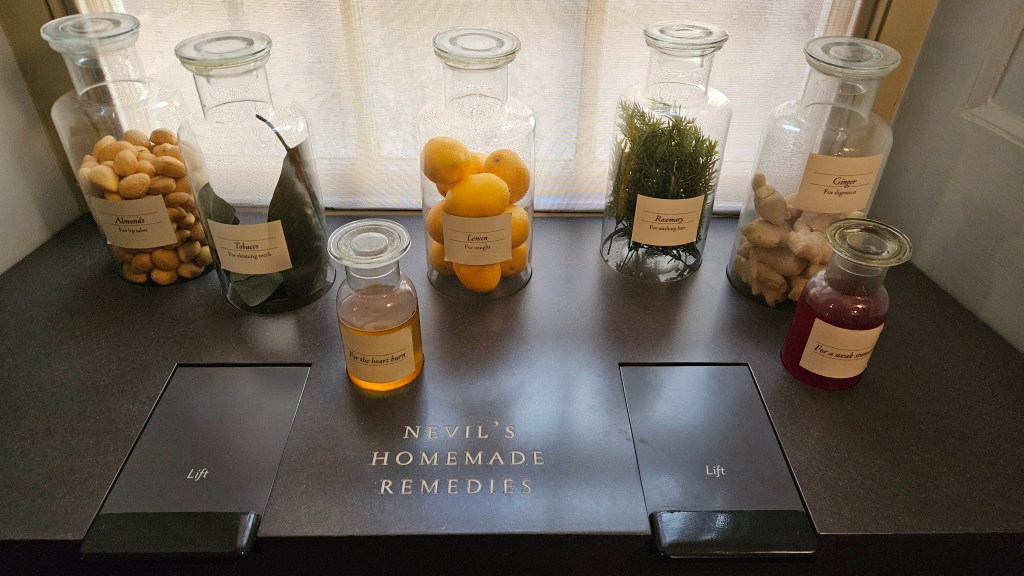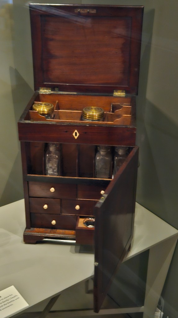 En visitant la maison des astronomes royaux je suis tombé sur la trousse médicinale de Nevil Maskelyne, Astronome Royal au XVIIIe siècle, accompagnée du livre The Domestic Medical Guide de Richard Reece. Une trousse et un livre qui témoignent d’une pratique alors courante : celle de soigner soi-même les petits maux du quotidien avec les plantes à portée de main.