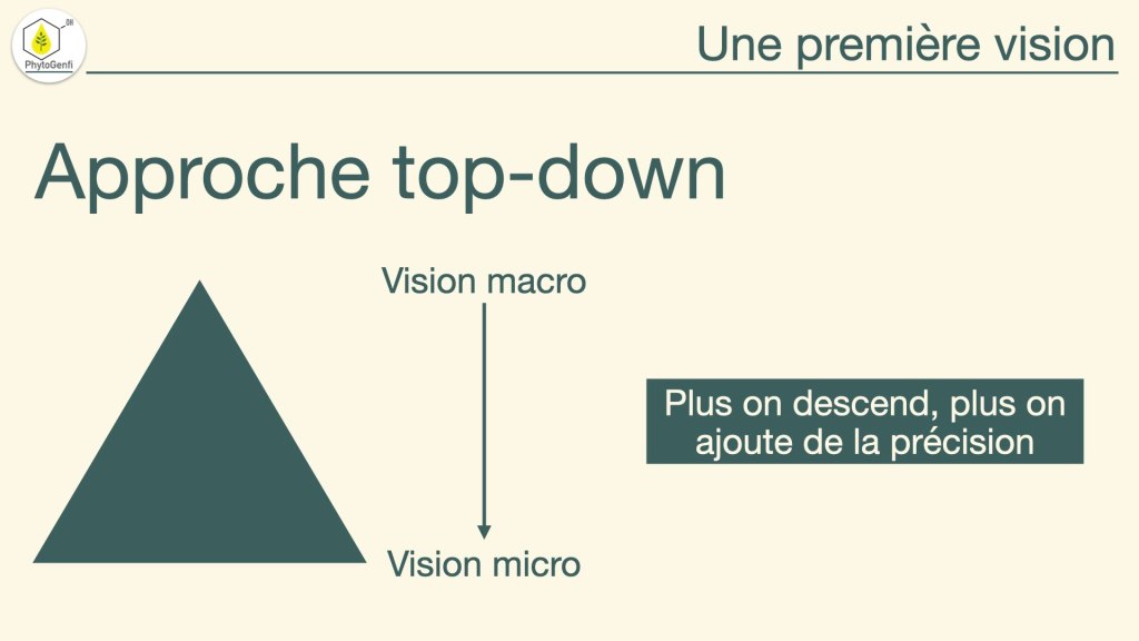 Pour ce faire, j’applique une démarche top-down dans laquelle je commence à présenter les principes de l’immunité de manière globale avec beaucoup de recul. Puis petit à petit on rentre dans le vif du sujet en ajoutant de plus en plus d’informations.