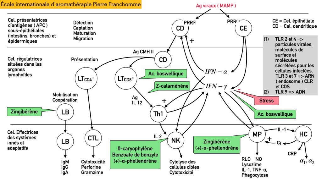 Il y a d’abord des leçons pour bien comprendre le fonctionnement du système immunitaire, et c’est seulement après qu’on est capable de comprendre comment s’articule l’action des huiles essentielles sur le système immunitaire.