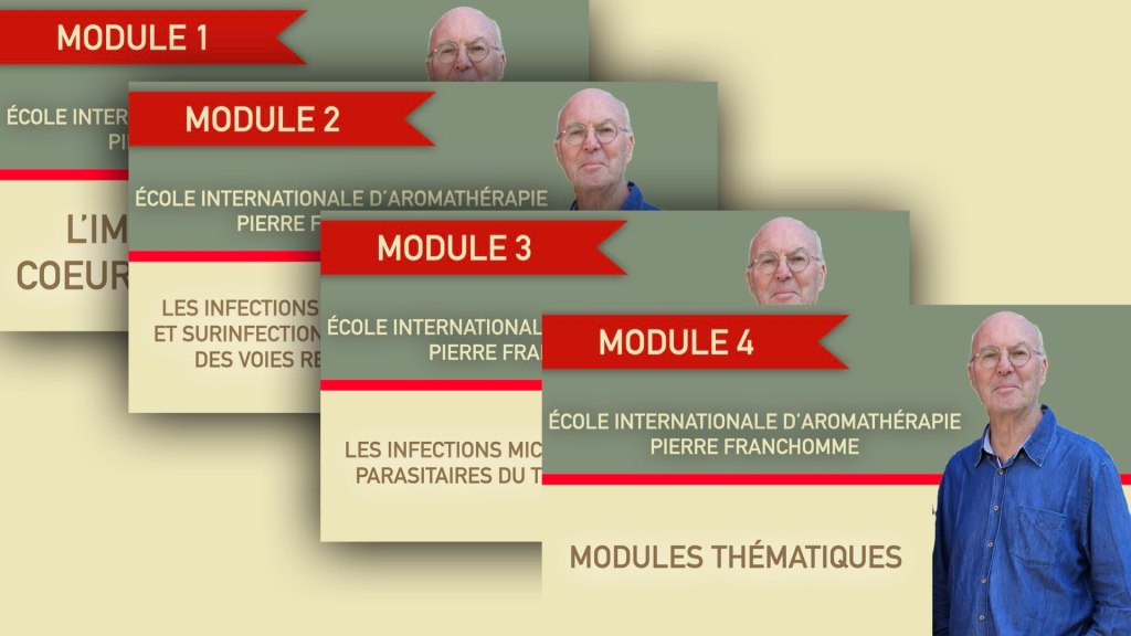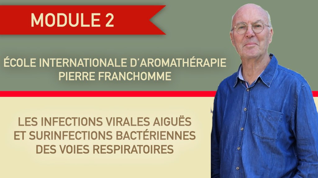 Le module 2 est dédié aux infections virales aigües et aux surinfections bactériennes des voies respiratoires. Il est composé de 6 vidéos représentant plusieurs heures de formation ainsi que d’un PDF de 300 pages contenant les supports présentés par Pierre Franchomme, les monographies détaillées des huiles utilisées et des exemples de cas pratiques avec les protocoles aromatiques mis en place dans des cas concrets.