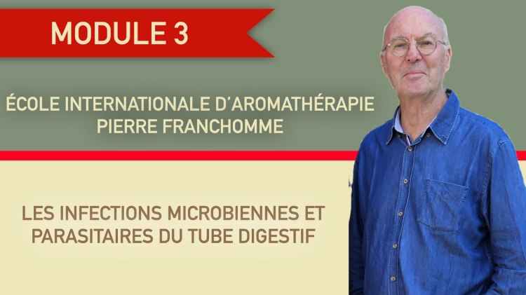 Le module 3 est dédié aux infections et problématiques du système digestif, c’est-à-dire de la bouche à l’anus. Ce module est en 2 parties, Chaque partie contient des vidéos et un PDF reprenant les diapos présentées dans les différentes vidéos. Pour infos les différents PDF reprennent les plus de 470 diapos présentées par Pierre Franchomme dans les vidéos.
